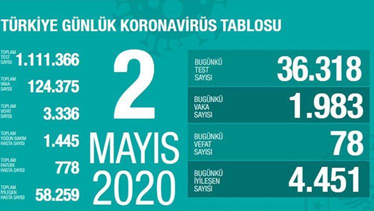 Sağlık bakanı dr fahrettin koca 4 mayıs korona virüs tablosunu açıkladı.